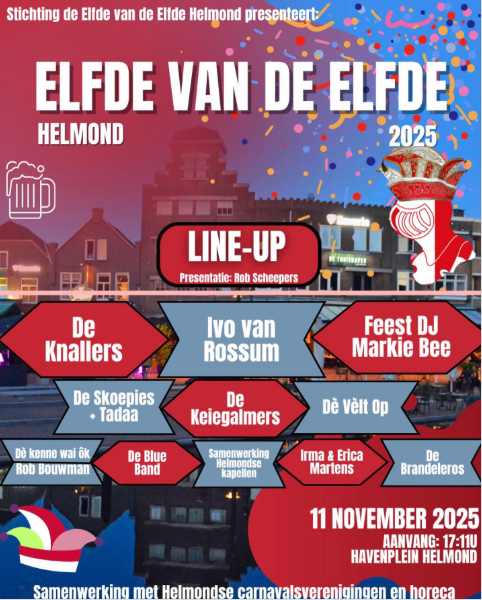 Dinsdag 11 november is het zover! Het carnavalsseizoen wordt geopend met een gigantisch spektakel op het Havenplein in Helmond. De heilige start van het carnavalsseizoen – een feestelijke aftrap waar Helmond van gaat daveren! Wij zijn met een grote groep van carnavalsvierders van CV Oranjebuurt aanwezig, inclusief onze nieuwe Prins die zaterdag bekend gemaakt zal worden.